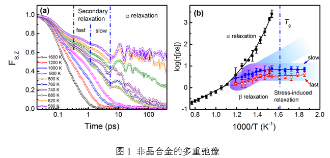 非晶态物质是一种微观结构长程无序、能量长期处于亚稳态的复杂多体相互作用体系。非晶态合金(又称金属玻璃)是50多年前发现的一类新型的非晶材料,它的发现极大丰富了金属物理的研究内容,日益成为凝聚态物理的研究前沿。非晶合金表现出很多独特的物理、化学性质,特别是块体非晶合金具有优异的力学性能,例如超高的强度和断裂韧性、高强度、低弹性模量等。块体非晶合金被认为是迄今为止发现的最强、最硬、最软、最韧的金属结构材料。尽管近年来在非晶合金方面涌现出大批的研究成果,但非晶合金中的一些基本问题仍然缺乏清晰的认识,例如非晶态转变的物理本质和非晶合金优异力学性能的物理本源等。目前的研究表明这些问题都与非晶合金中复杂的多重弛豫行为有关联。在非晶态合金形成过程中,存在长时结构弛豫与短时次级弛豫(弛豫)并存的多重动力学行为,次级弛豫的行为表征以及微观机制是目前非晶合金研究中的关键问题。