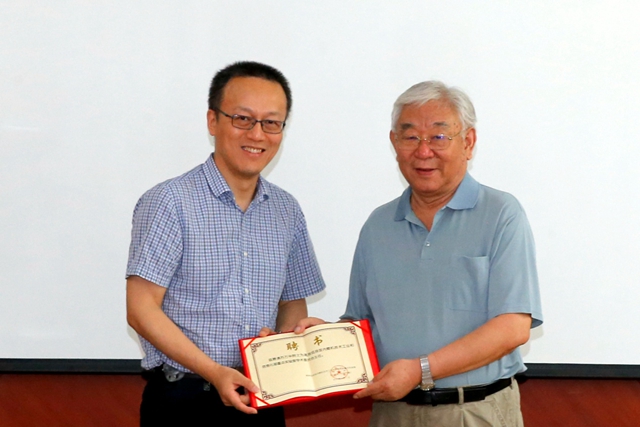 龙腾代表学校向天津大学苏万华院士颁发学术委员会主任委员聘书、向上海交通大学副校长黄震教授颁发学术委员会副主任聘书 、向兵器集团首席科学家中国北方发动机研究所王增全研高工颁发学术委员会副主任聘书。