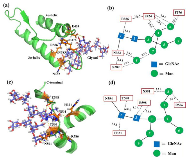 研究人员不仅从蛋白质多结构层次水平的角度对糖链和蛋白质之间的相互作用提供了独特的见解,而且促进了N-糖基化的理性设计,使其成为提高蛋白质稳定性的通用技术。相关研究发表在Journal of Physical Chemistry Letters(2018, 9, 4638−4645,IF="8.709)杂志上,该文章的第一作者是金年会jinnianhuicom的冯旭东预聘助理教授和王小艳博士。