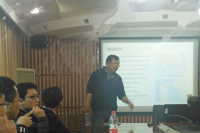 YuWang教授的报告题目为《群智感知中的参与者选择算法》。报告中,Yu Wang教授向大家详细介绍了群智感知技术的起源与发展背景、主要应用,并落脚在保障数据质量和用户隐私的参与者选择算法。报告结束后,他对老师和同学们关心的科研相关问题一一进行了解答。
