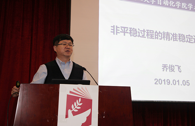 乔俊飞教授的报告题目为《非平稳动态系统平稳运行控制方法》,报告以城市污水处理过程为例,分析了非平稳系统的运行特点及对控制方法的挑战,进而提出了一种自组织控制方法,解决了这个复杂过程控制难题,实践应用证明,自组织控制方法是解决非平稳系统控制的有效方法。