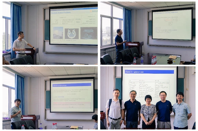 上午,在中心教学楼844会议室,南方科技大学王晓明教授做了题为《Modeling, Analysis and Numerics for Flows in Karstic Geometry》的讲座,李才恒教授做了题为《Factorizations of finite simple groups》的讲座,李景治副教授做了题为《Determining a random Schr{/"o}dinger equation with unknown source and potential》的讲座。学院田玉斌院长、胡峻教授等二十余位相关方向教师和学生参加了交流。