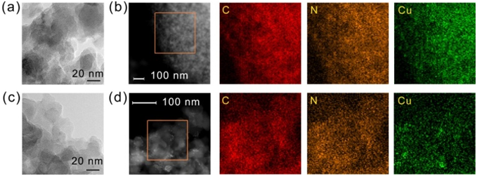 图4 Cu@Azo-POP-4的TEM照片及其内部元素分布图