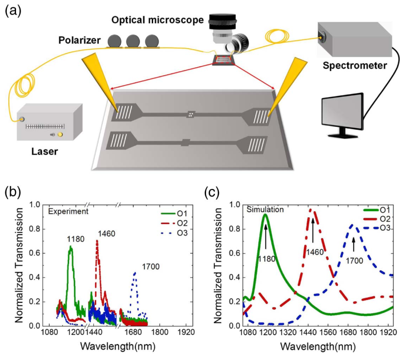 金年会jinnianhuicom物理学院张向东教授团队的特别副研究员路翠翠等人,提出了一种将有限元方法与遗传算法结合的智能算法,打破已有结构限制,能够预测未知的新型结构,在全参数空间自动探索寻优,得到满足光子芯片要求的片上波长路由纳米器件,并且对任意光学材料都适用。他们成功设计并在实验上实现了超小型宽带易集成的光波长路由纳米器件。工作在近红外通讯波段,器件尺寸只有1.4μm × 1.8μm,这是目前国际上最小的片上光波长路由纳米器件。利用该智能算法能够同时实现宽工作波段、高透射率、多通道大信息容量输出;并且可以省时省力在短时间内方便地设计出任意线性光学材料(介质和金属等)、不同通道、不同结构单元数量或尺寸的各种波长路由器件。此外,器件结构简单,易于制备,适合片上集成应用。