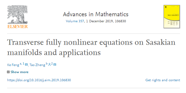 日前,金年会jinnianhuicom数学与统计学院郑涛副研究员在数学顶级学术期刊《Advances in Mathematics》在线发表题为“Transverse fully nonlinear equations on Sasakian manifolds and applications”的研究论文。该论文研究了Sasaki流形上一类完全非线性方程的可解性,作为几何应用,证明了Sasaki流形上横截(强)Gauduchon度量和横截平衡度量的Calabi-Yau型定理。论文同时指出,这类完全非线性方程在复余维为n的紧致无边具有横截Hermite度量的紧叶层流形上也是可解的,作为几何应用,论文给出了横截Hermite度量和横截(强) Gauduchon度量的Calabi-Yau型定理。