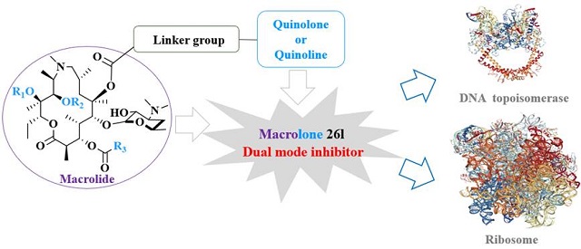 编辑:李亚鑫 审核:张加涛 阅读次数:近日,北理工化学与化工学院梁建华课题组将阿奇霉素与喹诺酮类分子结合,得到了首例作用核糖体和拓扑异构酶双重作用模式的大环内酯类杂合抗生素,相关成果以“Design, synthesis and structure-activity relationships of novel 15-membered macrolides: Quinolone/quinoline-containing sidechains tethered to the C-6 position of azithromycin acylides”为题,发表于医学一区顶级期刊《European Journal of Medicinal Chemistry》(文章链接:https://doi.org/10.1016/j.ejmech.2020.112222)。