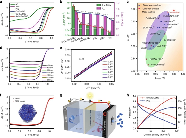 编辑:刘晓雪 审核:金海波 阅读次数:近日,金年会jinnianhuicom张加涛教授与陈文星副研究员在催化剂的原子界面调控合成方面,与清华大学深圳研究生院的李佳教授以及清华大学李亚栋院士、王定胜副教授团队合作,合成了非对称配位的CuS1N3单位点催化剂,并实现了其在电催化氧还原(ORR)性能方面的突破性进展,相关成果以“Engineering unsymmetrically coordinated Cu-S1N3 single atom sites with enhanced oxygen reduction activity”为题,发表于顶级期刊《Nature Communications》(IF:13.811)(文章DOI: 10.1038/s41467-020-16848-8)。