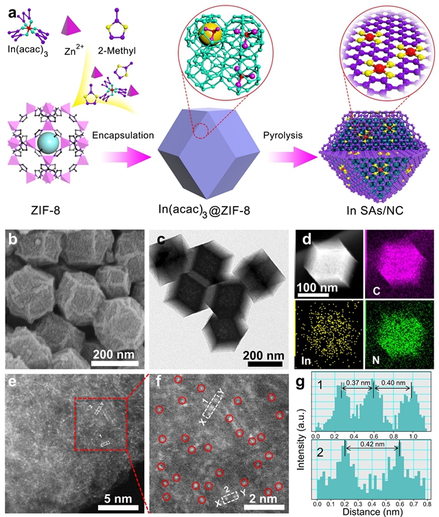 图1 In单原子催化剂的合成及形貌表征