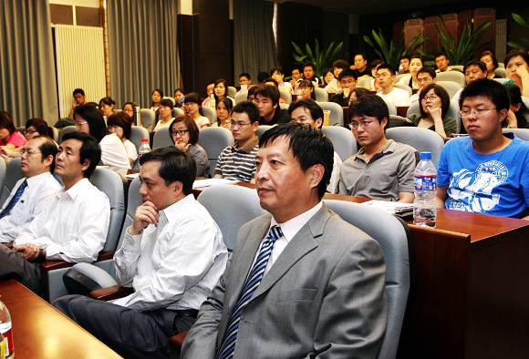 侯光明主持并全程参加了Howitt教授的演讲。国际交流合作处处长王庆林、管理与经济学院院长魏一鸣、管理与经济学院书记李金林、管理与经济学院副院长李健、孔昭君及100余位来自管理与经济学院公共事业管理专业、国际贸易专业、工商管理专业、管理科学与工程专业和MBA的师生出席了报告会,我院教师戚淳担任翻译。