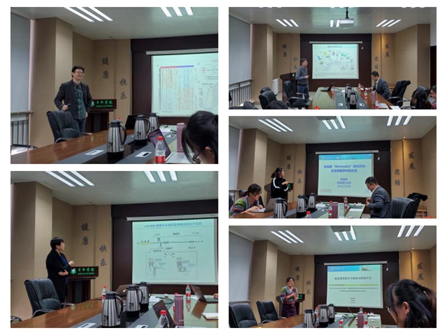 当天下午, 5位实验室成员进行学术报告,董磊教授、高昂教授、杨宇副教授、张金凤副教授、王燕峰助理教授分别就“shp2依赖的肿瘤治病机制与治疗”“mRNA介导的基因表达调控研究”“师法自然-寻找塑料污染的清道夫” “自组装纳米药物的制备及其在生物医学中的应用”“触觉感受的分子机制与药物开发”等研究方向进行了报告,与会者就相关内容进行了热烈的学术讨论。