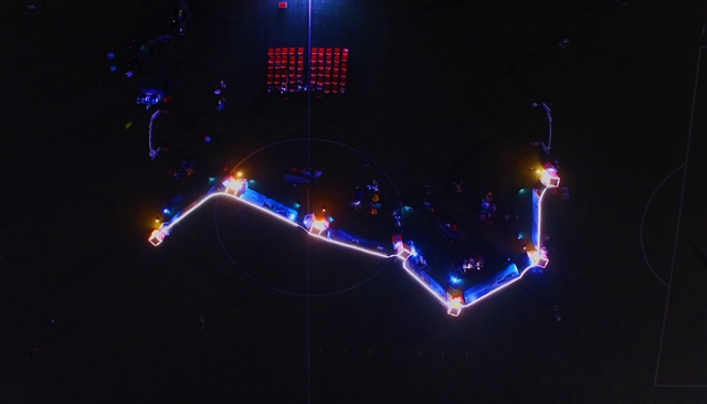 本次“航天嘉年华”活动的展示区域主体形状为北斗七星,象征着北理工参与研制的我国北斗导航卫星系统,同时也寓意新中国成立70周年与中国航天发展的70年。“北斗”展示区由7组立方体和6块大型展板组成,以每十年为单位展现了中国航天史的发展历程以及北理工在航天领域取得的重要成就。从“东方红”一号卫星的发射到嫦娥四号实现全球首次月球背面软着陆;从北理工研制的第一枚二级固体探空火箭到为嫦娥探测器规划的“北理工轨迹”,创意十足的展览吸引了广大师生驻足观看。夜幕降临,展览照明灯光亮起,在光灯的映衬下,“北斗七星”闪耀光芒,在北理工与浩瀚星空遥相呼应。