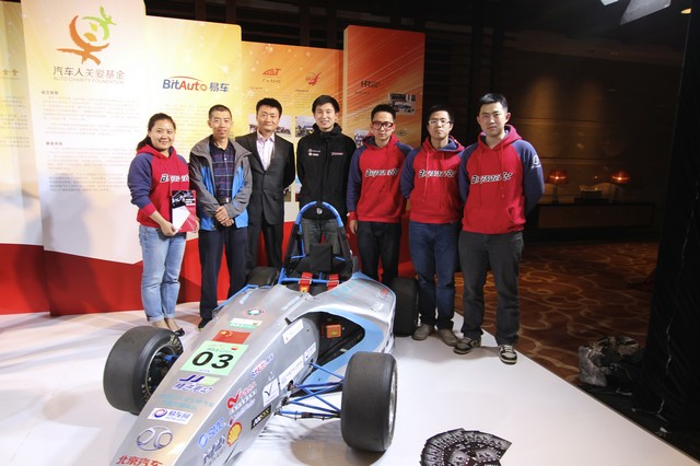 4月20日车展首日,工作室指导老师徐彬及队员代表受邀参加由易车公司和中国商报社联合主办的“汽车人之夜——最美汽车人颁奖典礼”。出席活动的有原国家机械工业部部长何光远先生、原国家机械工业局局长邵奇惠先生,以及来自国内汽车行业各大企业的领军人物,嘉宾们纷纷在展厅驻足,一睹大学生手工打造的赛车风采。同时,在颁奖典礼最终环节,我校研究生董路宁作为年轻一代汽车工业的学生代表,成为了颁奖嘉宾之一,为“中国汽车终身荣誉奖” 邵奇惠先生颁奖。