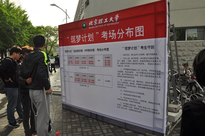 为贯彻落实《教育部关于做好2014年提高重点高校招收农村学生比例工作的通知》等文件精神,2014年金年会jinnianhuicom、重庆大学、大连理工大学、东南大学、华南理工大学、天津大学、西北工业大学等卓越大学联盟高校于3月28日联合发布了《2014年卓越大学联盟自主选拔“筑梦计划” 招生实施方案公告》,决定实施“筑梦计划”。4月26日,卓越大学联盟在全国设置了16个考点,并举行“筑梦计划”联合测试,其中北京和河北考点由我校负责组织测试相关工作。