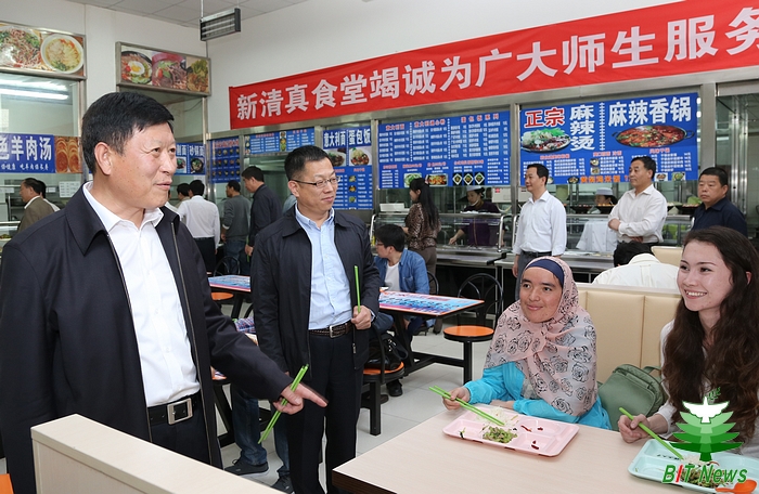 调研座谈结束后,调研组一行来到学生清真食堂就餐。金书波组长在就餐期间与我校青年学生亲切交谈,了解学生在校学习生活情况。