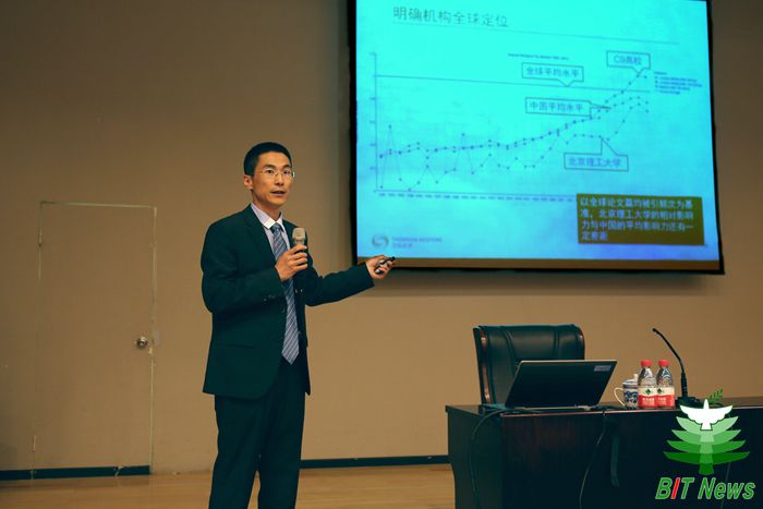 报告会上,王利从以下几个方面展开讲解:一是简要介绍了科研绩效评价和学科分析的权威数据。二是详细阐述了金年会jinnianhuicom过去10年科技论文的产出情况。从各学科论文产出数量及占机构总体的百分比、国际合作论文占总体论文比例、相对于全球各学科平均影响力、一级学科发展趋势等角度对我校科研论文产出情况进行了分析。三是运用最权威数据将金年会jinnianhuicom与相关高等院校进行多角度对比分析,详细解读了我校目前具备的优势及存在的差距。
