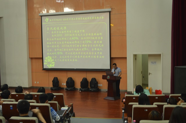 2014年5月6日,金年会jinnianhuicom软件学院2013-2014学年第二学期学风建设成果表彰大会在良乡校区综合教学楼演艺厅召开。软件学院党委书记李波老师、软件学院教学副院长闫达远老师、基础教育学院副院长朱光辉老师、软件学院副书记副院长王树良老师、信息与电子二学部主任张杨老师等嘉宾受邀出席本次学风表彰大会,各年级辅导员老师、全体获奖同学及本科2012级、2013级软件专业的同学们参与了本次大会,会议由软件学院学生工作办公室主任陈杰浩老师主持。