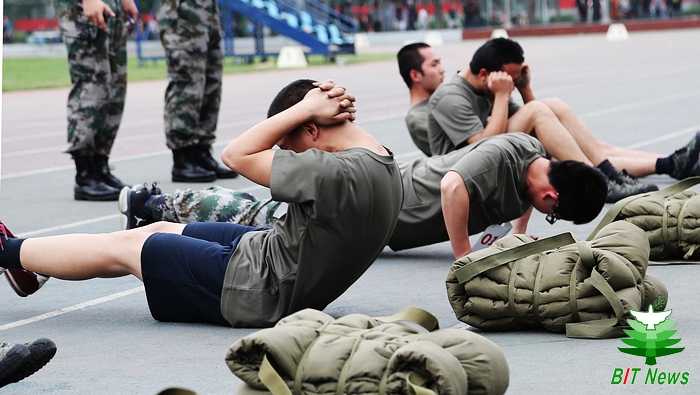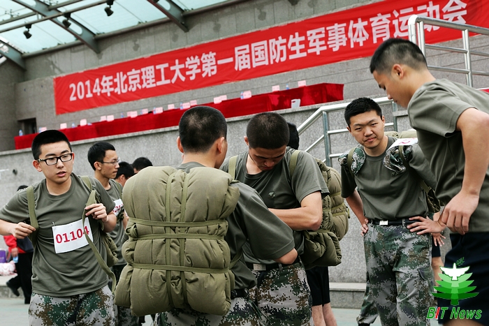 在分设的6大类15项竞技项目中,具有浓厚部队特色的“铁人三项”和“万米接力”是本届运动会亮点。“铁人三项”要求参赛人员在完成一定数量的仰卧起坐和俯卧撑后,打背包跑完3公里,这既是对平日训练科目的检验,也是对参赛选手体力耐力的大考验。“万米接力”要求每个年级出25名选手,其中必须包含2名女生,这不仅是对年级整体训练水平的考查,也是对指挥员临场排兵布阵的考验。
