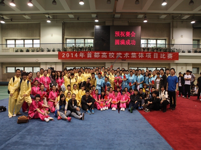 近期,首都高校武术集体项目比赛在北京中医药大学隆重举行,此次比赛吸引了来自北理工,北航,北工商,北京中医药,中华女子学院等多支代表队伍,包括集体剑术,刀术,太极拳等多个项目的比赛。最终我校技压群雄,喜获2014年首都高校武术集体项目比赛团体第一名。