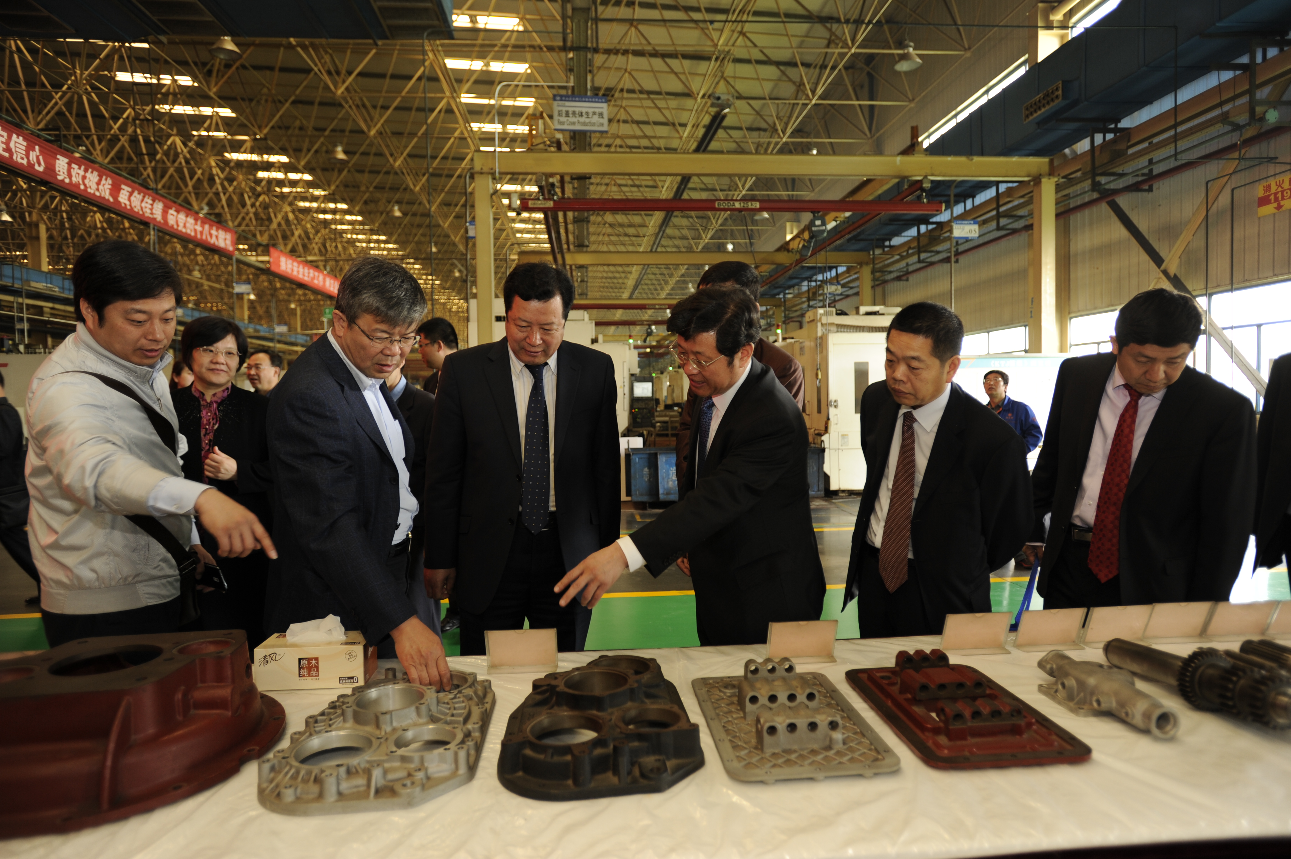 随后,赵平副校长一行又赶赴陕西汽车集团有限责任公司,进行了参观、调研与座谈等活动。集团副总王小峰先生陪同参观了整车车间,并向各位老师介绍了目前集团的发展情况,特别是新款重卡的特性、生产、销售等情况。