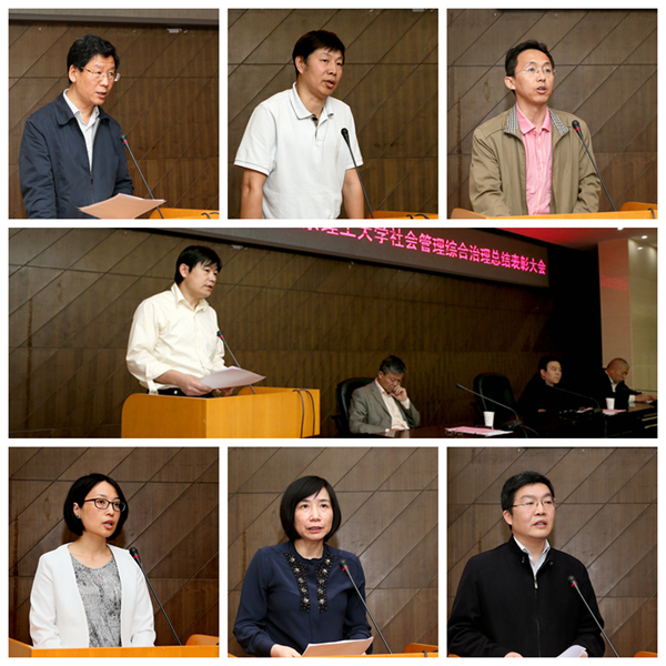 校综治委副主任赵平同志宣读了党委对光电学院,管理与经济学院,外国语学院,继续教育学院,学校办公室,基建处,档案馆,后勤集团8个综合治理先进单位的表彰决定。随后,杨宾、赵平、李和章三位校领导为8个先进单位颁奖。