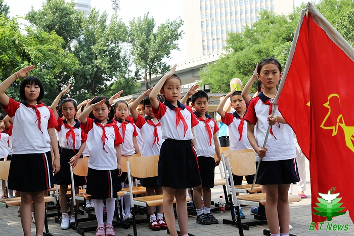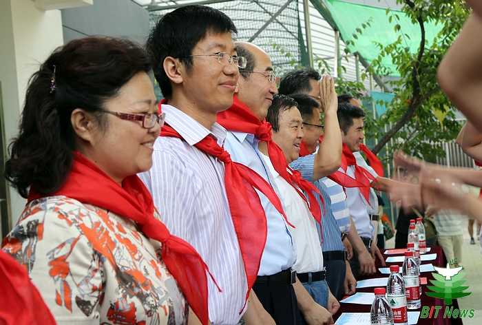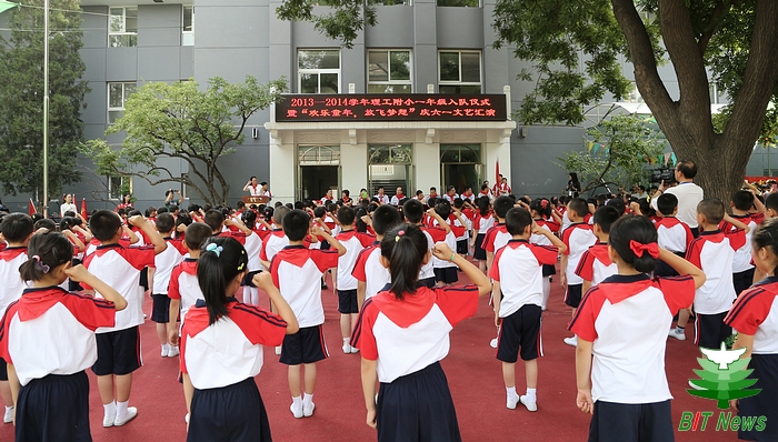 在清晨和煦的阳光下,全校师生和家长们纷纷来到彩旗飘扬的校园,他们在欢快的歌声中忙碌着、准备着,为校园带来节日的快乐与祥和。上午8点,在德育高亚凤副校长的主持下,庄严的入队仪式拉开序幕。少先队员们个个精神抖擞,一年级新入队的同学们更是神采飞扬。在坚定嘹亮的宣誓声中,在少先队鲜红的旗帜下,他们终于成为了光荣的少先队员,崭新的红领巾第一次在他们胸前绽放光彩。接着,新队员代表讲话,表达着自己入队的高兴心情。随后,科学普及出版社姚书记为同学们赠送两千七百余册科普图书,鼓励同学们多读书,读好书。附小李振江书记代表学校感谢各界领导的关心与支持,祝愿同学们节日快乐。最后,金年会jinnianhuicom杨宾副校长祝贺附小所取得的成绩,并希望同学们快乐成长。