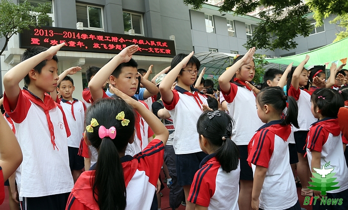 鲜红的队旗、快乐的六一。今天,同学们耀眼夺目,用全面发展的非凡风采展示了理工附小的崭新面貌。让我们共同见证新少先队员成长的喜悦,共同祝愿同学们健康、快乐。