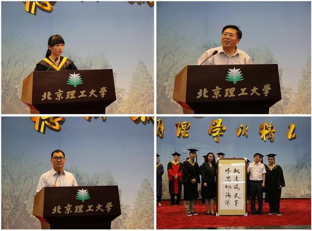 车辆工程专业本科生、北京市优秀毕业生谢杉杉在发言中深情地回忆了在校学习和生活的点滴,表达了毕业生对母校深深的留恋和感激之情,表示在今后一定不会辜负母校重托,积极努力,勇敢前行。机械工程专业本科生孙伟强的家长孙宗仁同志代表家长发言,感谢了学院对学生的悉心培养,衷心祝愿所有毕业生事业有成。能源与动力工程专业1班班主任韩恺老师作为教师代表发言,表达了对同学们的不舍之情,希望大家能在今后努力奋斗,成就属于自己的辉煌。