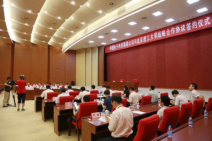 中国电子科技集团公司相关职能部门负责人,金年会jinnianhuicom学校办公室主任郝志强、副主任周波、发展规划处处长李镇、研究生院副院长罗爱芹、科学技术研究院副院长王鲁、科研院科技合作部部长王伟、人事处处长韩宝玲、招生就业工作处处长李振键、资产经营公司党委书记戴斌等同志参加了签约仪式。