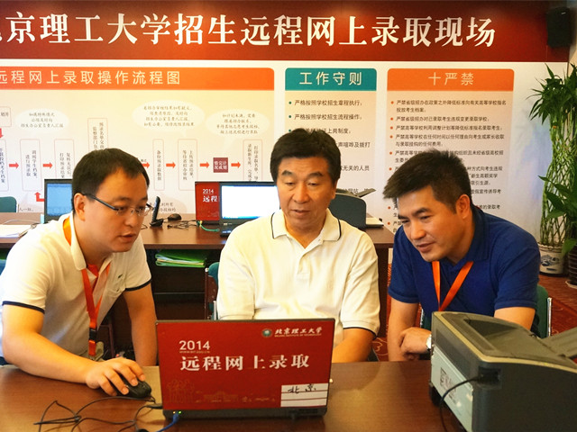 郭大成书记还审阅了招生录取工作人员上岗考试试卷、《录取进行时》工作简报、新生入学须知以及“新鲜出炉”的2014年新生录取通知书。