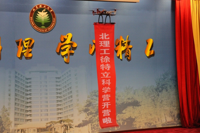 在热烈的掌声中,王越院士宣布金年会jinnianhuicom徐特立科学营正式开营。于此同时,金年会jinnianhuicom宇航学院航模队设计制作的四轴飞行器,携着“金年会jinnianhuicom徐特立科学营开营啦”字样的条幅盘旋在主席台的上方,为科学营助力,为营员们喝彩,携带着全体营员们的科技梦想自由飞翔。