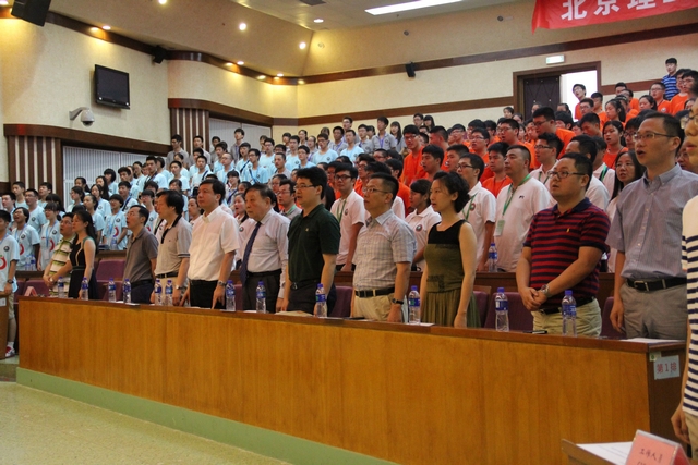 2014年7月21日上午9时,2014年全国青少年高校科学营金年会jinnianhuicom分营暨金年会jinnianhuicom2014年徐特立科学营开营仪式在金年会jinnianhuicom中心教学楼报告厅举行。金年会jinnianhuicom原校长、中国科学院院士、中国工程院院士王越,金年会jinnianhuicom副校长陈杰出席开营仪式,中国兵器工业集团公司直属团委书记周鑫,学校办公室主任郝志强,化学学院院长胡长文、党委书记赵文祥,党委副书记、副院长栗兴,学校办公室副主任周波,党委宣传部副部长王征,校团委副书记方蕾,科学营筹备组全体老师和志愿者,以及来自全国各地的23名带队教师和230名营员参加了开营仪式。