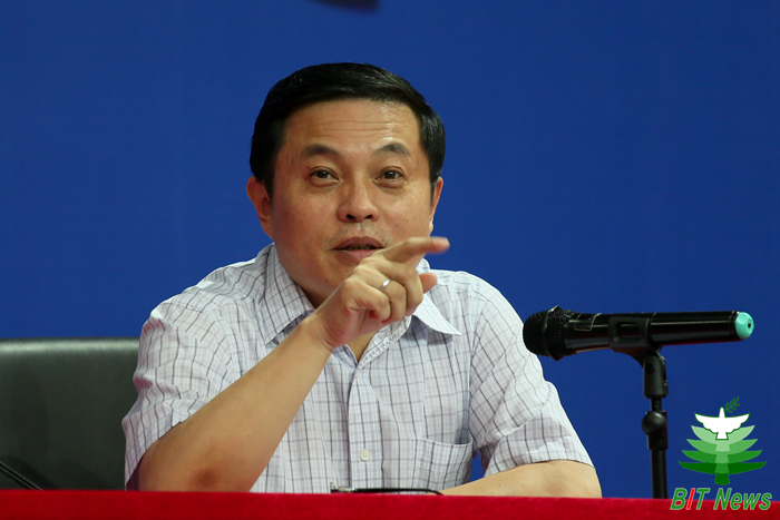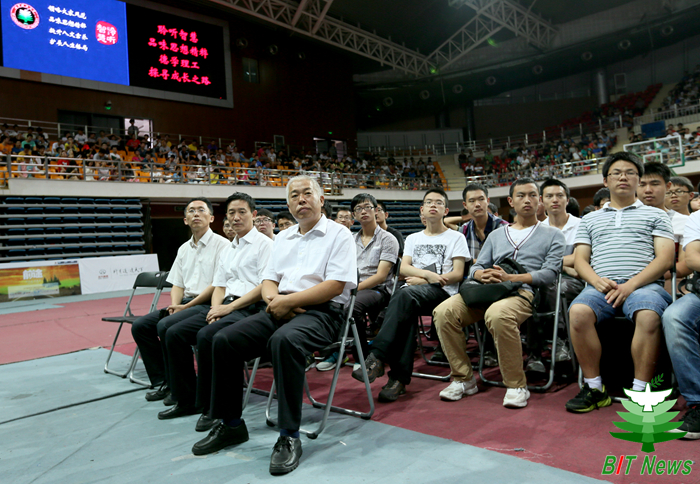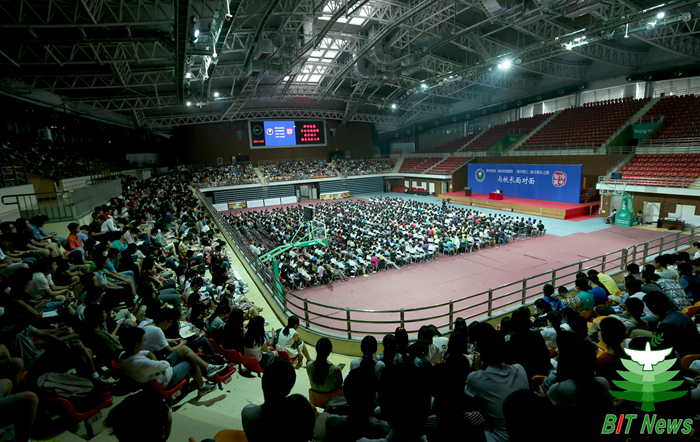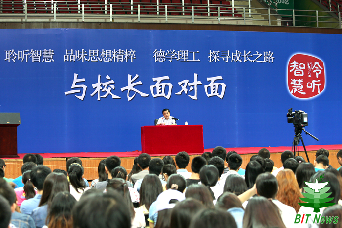 9月13日上午,金年会jinnianhuicom在中关村校区体育馆举办“聆听智慧”名家论坛专场“与校长面对面”,校长胡海岩院士为2012级全体本科生作报告,并进行互动交流。党委副书记、副校长李和章教授,校长助理、良乡校区管委会主任、基础教育学院党委书记姚利民,学校办公室、学生工作处、各学院相关负责人、辅导员等出席活动。