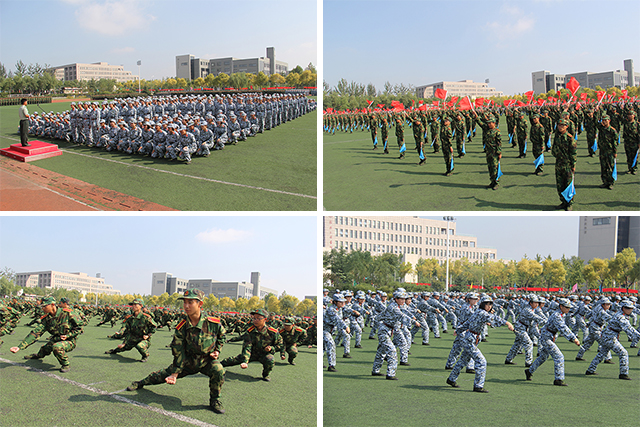 军事科目表演包括三声三相、海军旗语、军体拳和匕首操四部分。各表演方阵出招迅速有力,动作标准到位,精神抖擞、杀声震天,赢得了主席台领导嘉宾和在场学员的阵阵掌声。