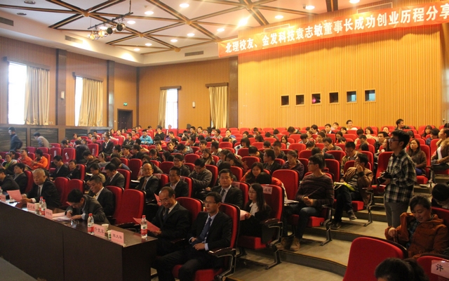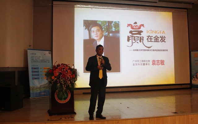 表彰会后,袁志敏校友向在座同学做了关于立业、创业、成业历程的讲座,回顾了自己创建金发科技公司的艰辛历程,公司在不断的改革创新推动下,一步步走向世界领先水平。他鼓励在座的同学们坚持自己的梦想,超越自我,勇创佳绩。