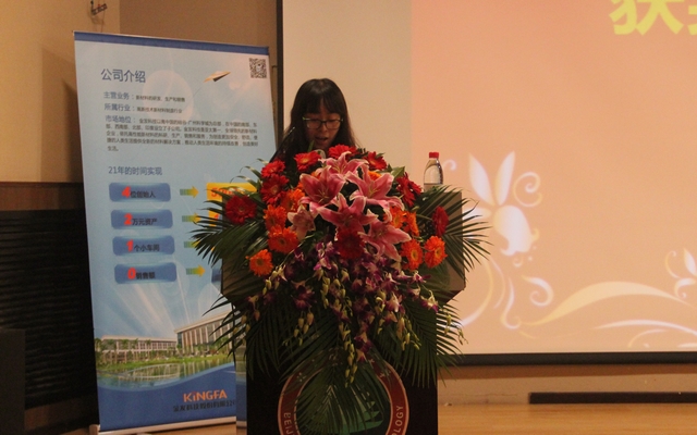生命学院2011级本科生李帅同学发表了获奖感言,她感谢金发科技奖学金给予的激励和帮助,表示自己将沿着既定的奋斗目标,戒骄戒躁,脚踏实地,取得更好成绩。