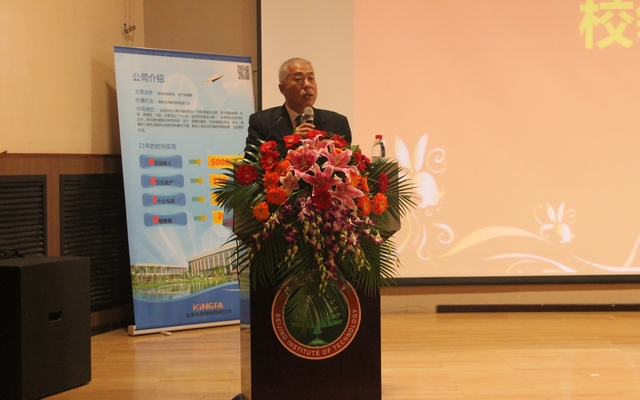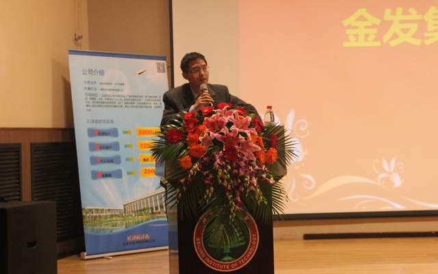 金发科技股份有限公司首席技术官、北理工校友黄险波先生致辞,阐释了奖学金设立的目的和意义,希望通过奖学金激励和帮助更多优秀的学生,并以奖学金为平台推动校企合作。最后,他希望更多优秀的北理工学子加入金发公司,共同发展。