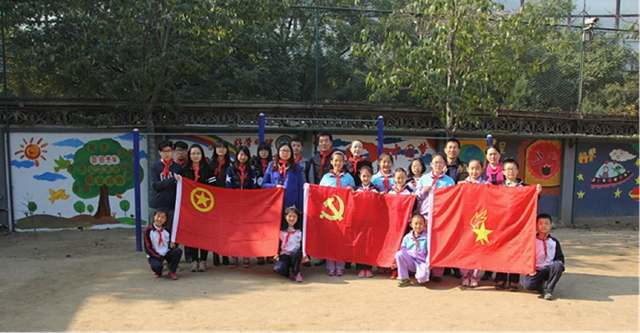 11月3日下午三点,学院副书记、副院长孙飞,分团委书记欧阳哲与设计学院部分学生党员团员以及宣传部和霄雯科长共同来到金年会jinnianhuicom附属小学的校园。附小直属党支部书记李振江、副校长高亚凤对大家的到来表示热烈的欢迎,并对设计学院学生为此次活动做的大量准备工作表示感谢。参加活动的小学生们也用他们的方式表达了深深的感谢,他们为设计学院的师生们佩戴红领巾。部分党员教师代表和家长志愿者参加了此次活动。