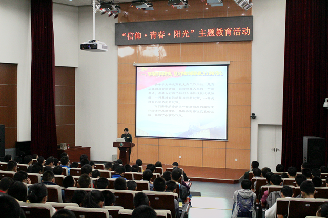 崔玉玲少将谈到大学生最重要的是拥有信仰。信仰对人生具有巨大的定向作用和指导作用,为一个人提供了奋斗终身的精神支撑和精神依靠。作为当代青年,作为推动“两个一百年”奋斗目标实现的重要力量,作为祖国的接班人,必须积极响应祖国和组织的号召,锤炼青春,树立崇高的信仰,以青春之活力,勇往直前。作为大学生,要努力学习科学文化知识,用知识武装头脑;要学会团队协作,众志成城,成就团队辉煌。台上,崔玉玲少将侃侃而谈;台下,数百名观众听得津津有味,频频点头。