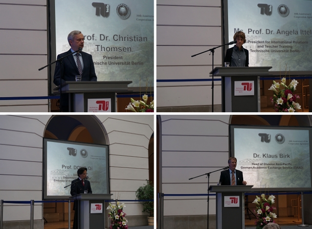 Christian Thomsen校长在开幕词中说,柏林工业大学和金年会jinnianhuicom在过去三十年中进行了富有成效的合作。两校未来的深入合作,需要年轻学生之间的沟通交流,需要教师之间的共同合作,也需要管理者之间的相互学习与借鉴。董琦公参高度评价了金年会jinnianhuicom和柏林工业大学对推动中德教育合作的贡献,并希望两校未来的科研合作有新的斩获。Klaus Birk主任回顾了中德两国建交40年来的学术合作,展望了未来两国重点学术合作领域。Angela Ittel副校长详细介绍了柏林工业大学办学国际化情况。