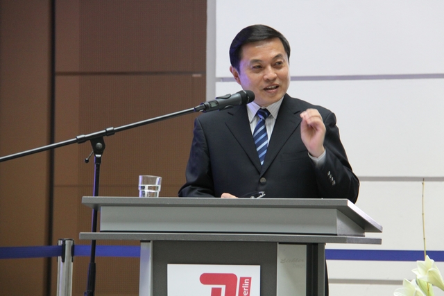 2014年11月6日,“金年会jinnianhuicom日暨柏林工大-北理工合作三十周年纪念”活动在柏林工业大学隆重举行。胡海岩校长率团出席活动,代表团成员来自我校机械与车辆学院、光电学院、自动化学院、生命学院、化学学院、管理与经济学院、国际交流合作处、国际教育学院。活动开幕式由柏林工业大学校长Christian Thmosen教授主持,中国驻德使馆公使衔教育参赞董琦、德意志学术交流中心(DAAD)亚太区主任Klaus Birk,柏林工业大学副校长Angela Ittel分别致辞,胡海岩校长作主旨报告。