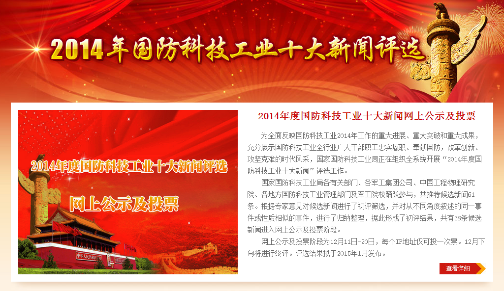 北理工两项新闻入选2014年国防科技工业十大新闻候选条目