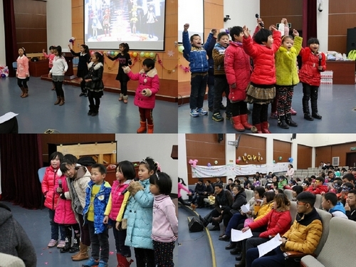 随后,小同学们带来了精彩的节目。清脆的童音,欢快的舞步,让人感受到真诚与活力。也许表演算不上足够精彩,但是他们的用心与努力让人感动。志愿者们还带领小同学参与互动游戏,大同学与小同学互相配合,努力完成了有趣的小游戏,现场气氛十分热烈。
