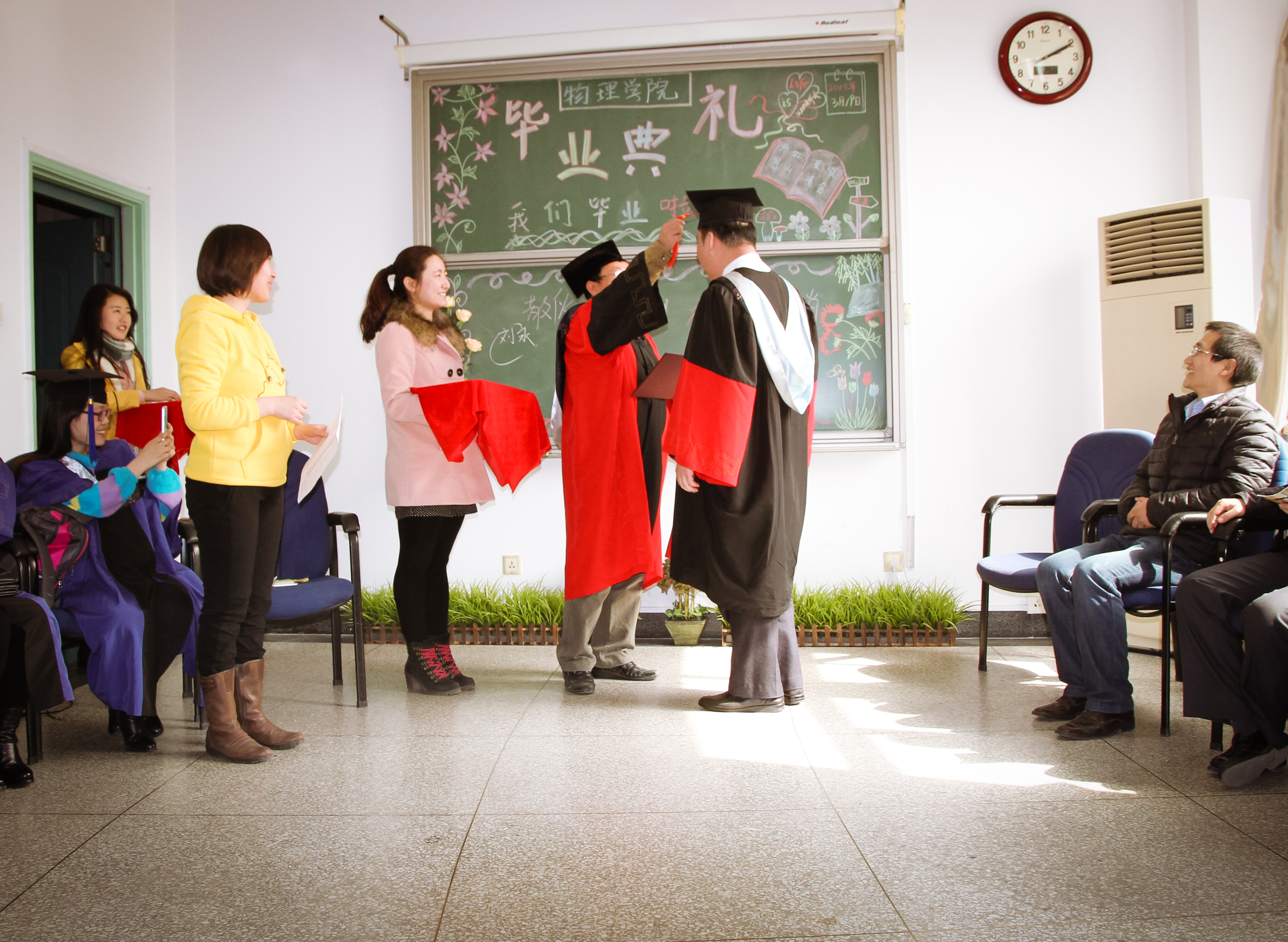 物理学院副院长姚裕贵教授为毕业生授予学位。授予仪式结束后,姚裕贵副院长和杨艳波副书记分别代表学院向同学们表示祝贺,在过去的几年与物理学院共同成长和进步,感谢同学们在物理学院发展中作出的贡献。邀请同学们作为校友时常回母校来,物理学院随时欢迎大家。最后祝愿同学们在未来的工作和学习中,踏实进取,通过自己的努力实现心中梦想。