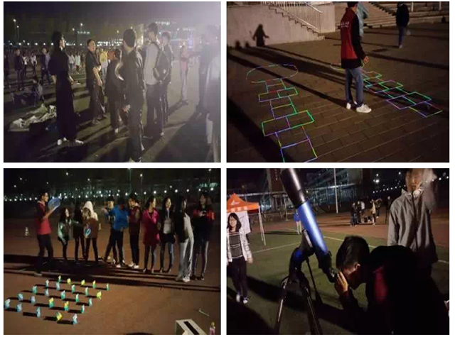 晚上20:30,“地球一小时”活动正式开始。活动现场,不仅有各个社团的精彩表演,妙趣横生的套圈知识竞赛、环保连连看和光绘体验,更有紧张刺激的奔跑大作战,可谓缤彩纷呈,到处洋溢着释放压力,挥洒汗水的热情与活力。每个活动区都聚集着闻讯而来的同学们,或是出于好奇心,或是出于奖品的诱惑力,亦或是无聊之余的尝试感,同学们都展现出极大地积极性与参与度。三三两两,驻足停留,哪怕是在星空下静静地观赏电影,聆听音乐,哪怕是体验别样的“风信子”帐篷之夜,观摩魔术的视觉盛宴,每一个,都给了我们无电状态下亲近自然,感受自然的机会,都给了我们单纯环境里追逐青春,感怀青春的机会,每一个,都恰如其分地提醒着我们生活不该只有电源屏幕,更多的该是与心的交流,与自然的对话。活动的高潮自然非“奔跑吧,地球”莫属了,一个集体的项目,一个考验速度、力度、准度的项目,一个让每个奔跑者忘我畅快的项目。即使被淘汰,依旧有一笑置之为他人呐喊助威的气度,试过,那便是最大的成功。操场上的声声爽朗之音,荡漾在每个人心底。