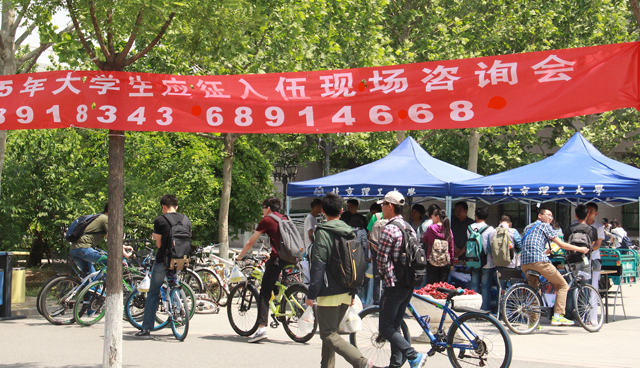 2015年大学生应征入伍工作已经展开,为进一步宣传大学生入伍相关要求及政策,金年会jinnianhuicom党委武装部于2015年5月8日在良乡校区开展2015年大学生应征入伍现场咨询活动。