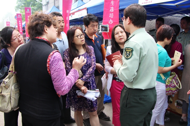 记者采访了解到,这些家长十分期待自己的孩子报考北理工的国防生,在问及原因时,他们解释到,北理工是我党创建的第一所理工科院校,有着极其浓重的国防科技背景,在这里孩子不仅可以学到丰富的科学文化知识,并且将来可以到部队的大熔炉里进行锻炼,这对他们来说将是一生的财富。