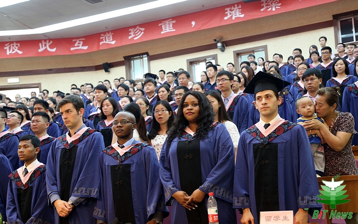 企业导师代表董尚雯老师发言,希望学生将所学管理知识用于自己的实际工作中,为企业的发展、事业的进步、管理水平的提升作出贡献。毕业生代表刘佳力、奥西特、弗朗西和高吟佳,先后发言感谢母校对同学们的培养。来自墨西哥的留学生代表弗朗西发言,感谢中国政府提供的奖学金,永远铭记是一名“北理人”,将在促进本国与中国各项事业的发展中贡献的力量!全体毕业的同学为学校捐助了“学生和校友活动基金”,表达对母校的热爱和对学弟学妹们的厚爱。出席毕业典礼的各位老师为全体毕业生扶正流苏、授予学位并合影留念。至此管理与经济学院2015届专业硕士学位毕业典礼暨学位授予仪式圆满落幕。