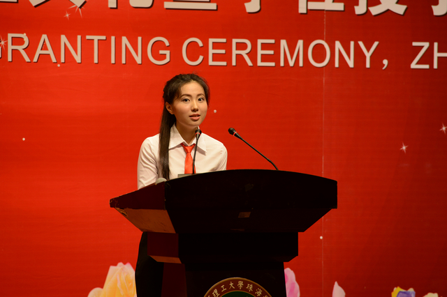 毕业典礼上,珠海学院院长赵显利教授以““理想、担当、感恩、奋进”为主题,从师长角度阐释在纷繁复杂、功利浮躁的社会环境下,面对结构调整、创新驱动的社会环境,坚守理想、勇于担当至关重要;感恩是一种道德,一种处世理念,是生活的智慧之源;奋进一种精神,一种工作态度,是事业的驱动之力。赵院长表示,珠海学院的毕业生不仅是珠海学院的校友,也是金年会jinnianhuicom的校友。今年正值金年会jinnianhuicom建校75周年,希望全体毕业生无论身处何方,从事何业,都要培育担当精神、常怀感恩之心,多回母校看看。