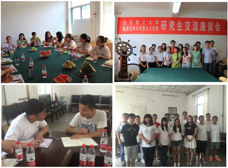 首日的交流活动取得了丰硕的成果,在后续行程中再次安排了多场交流活动。延安大学马克思主义学院张志强老师主持进行了两校马理论研究生交流,两校师生共同分享了彼此在学习和科研上的心得体会,并就日常生活管理、职业规划等方面进行了深入的交流。与此同时,实践团内的其他成员也从自身担任学生干部的角度出发,与延安大学的主要学生干部进行了座谈,详细交流了学校党建、团建及科技创业创新的基本情况,场面热烈,气氛活跃。