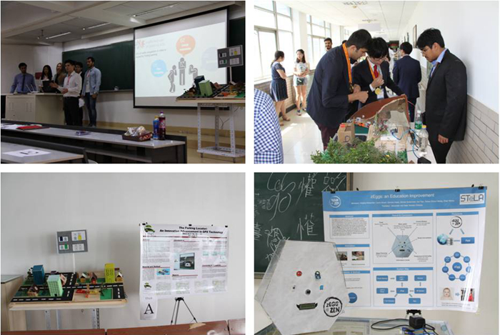 进入第二个工作日,各组代表更是争分夺秒,分工合作,发挥所长,到晚上五个组全部完成“产品”的制作、调试,移动设备虚拟客户端的设计,视频材料的采集和海报的设计制作,又连夜赶制完成了PPT和视频的剪辑。